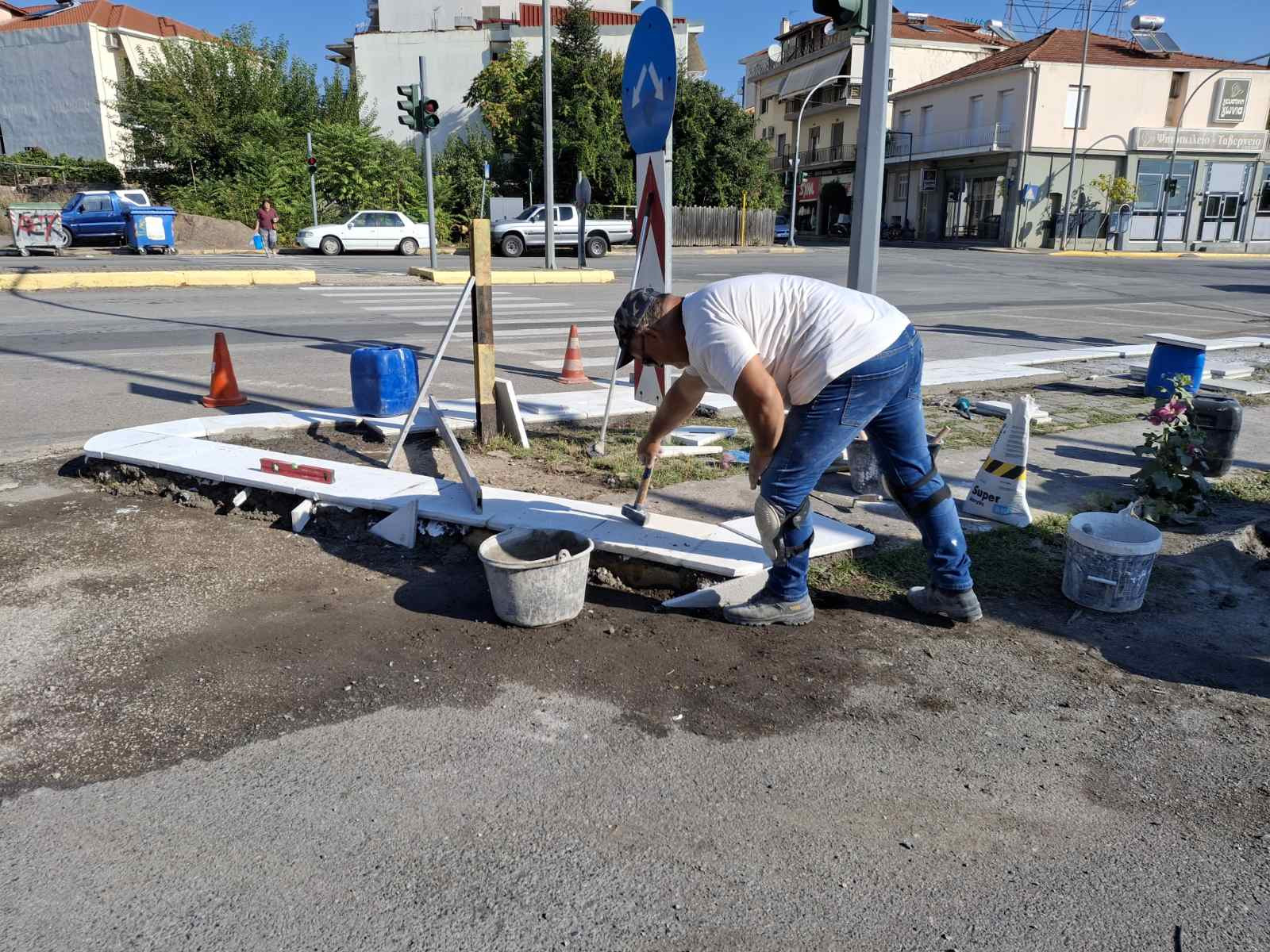 Εργασίες επισκευής του πεζοδρομίου, επί της οδού ΟΗΕ, στις γραμμές του τρένου, πραγματοποιήθηκαν από συνεργεία του Δήμου Τρίπολης.